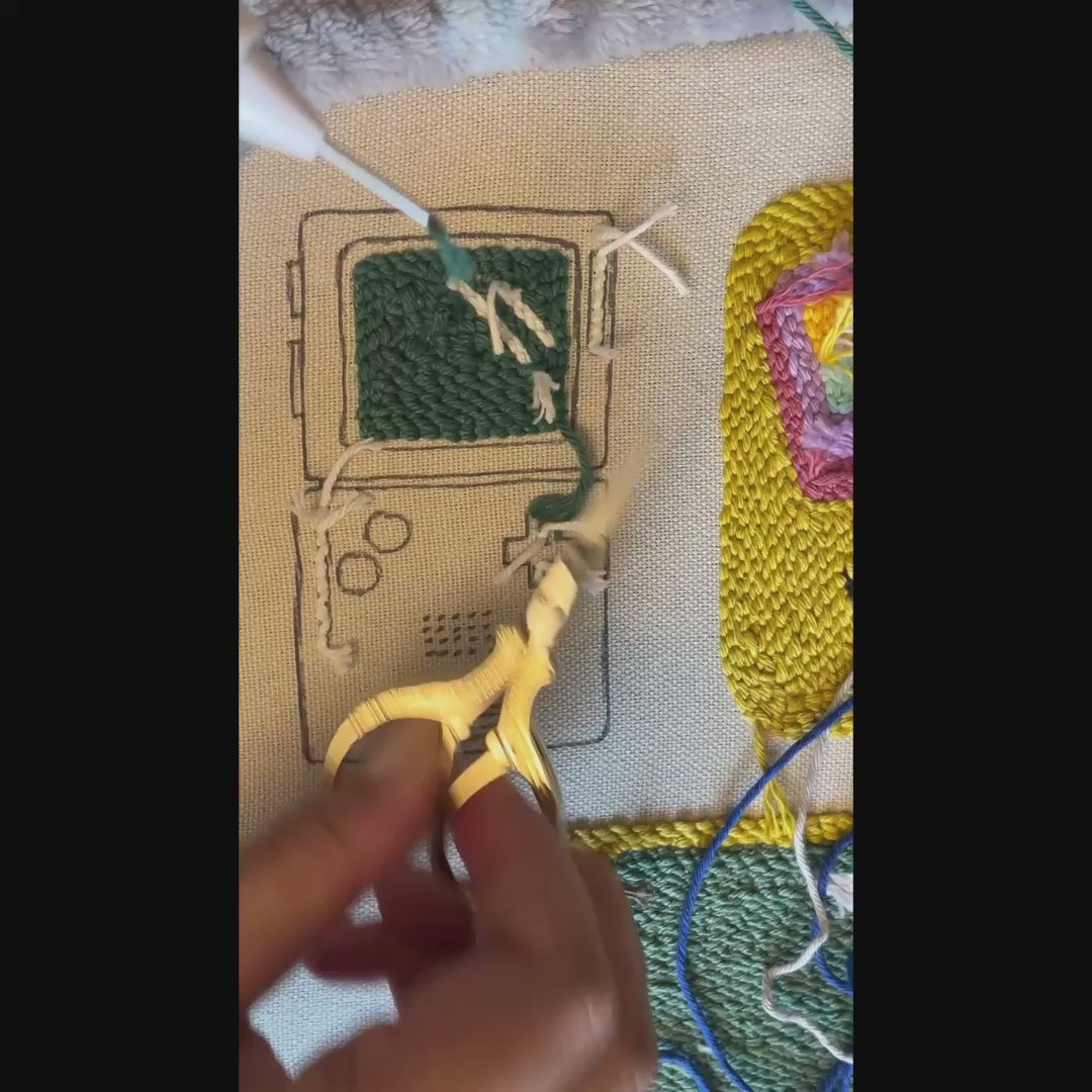 Gameboy Punch Needle Untersetzer-Vorlage als PDF herunterladen – Retro-Spielkonsolen-Design