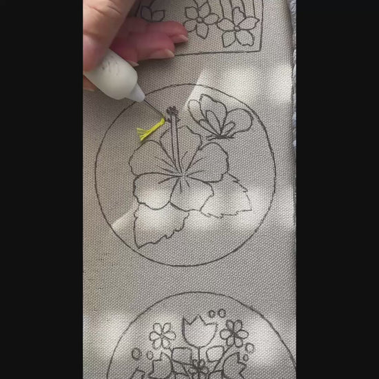 Hibiskusblüten-Stickmuster (PDF-Download) – Frühlings-Untersetzer-Stickerei mit Schmetterlingsmotiv