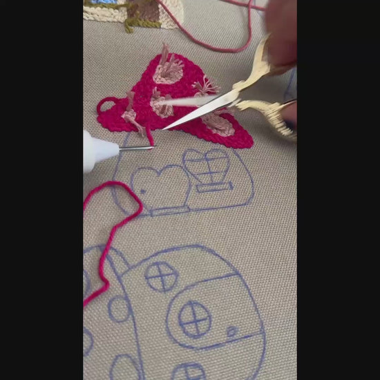 Untersetzer-Anleitung „Pink Mushroom House Punch Needle“ als PDF-Download – mit Herzdetails (Anfängerprojekt)
