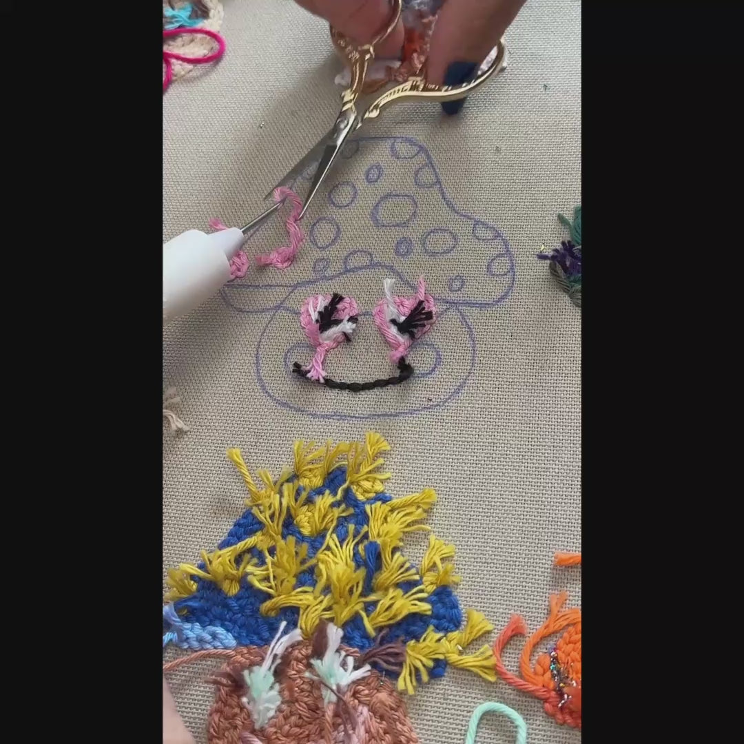 Prinzessin Pilz Punch Needle Untersetzer-Muster PDF-Download - Fuchsia Sonnenbrillen-Charakter