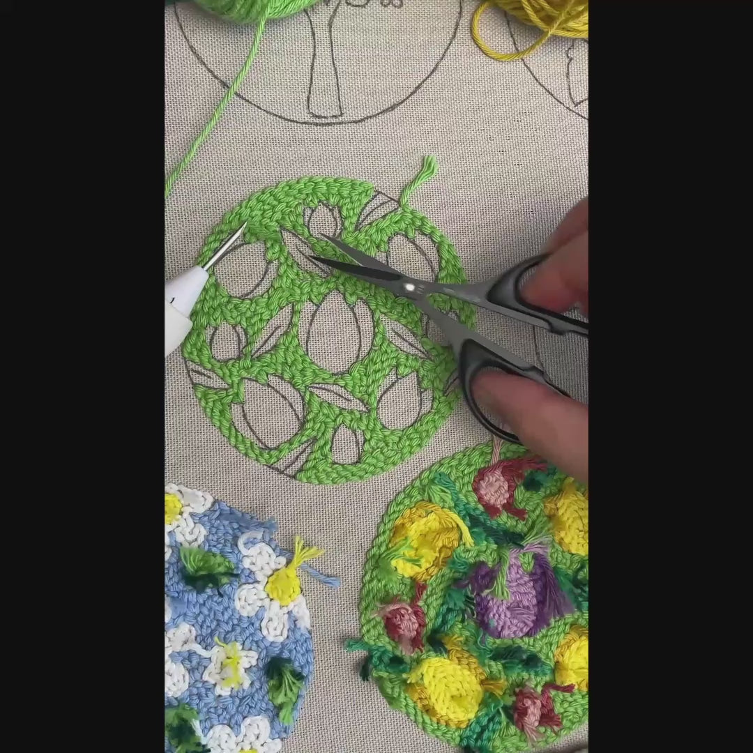 Stickmuster für Punch Needle (PDF-Download): Frühlings-Tulpengarten-Blumen-Untersetzer-Stickerei – Einfaches Projekt