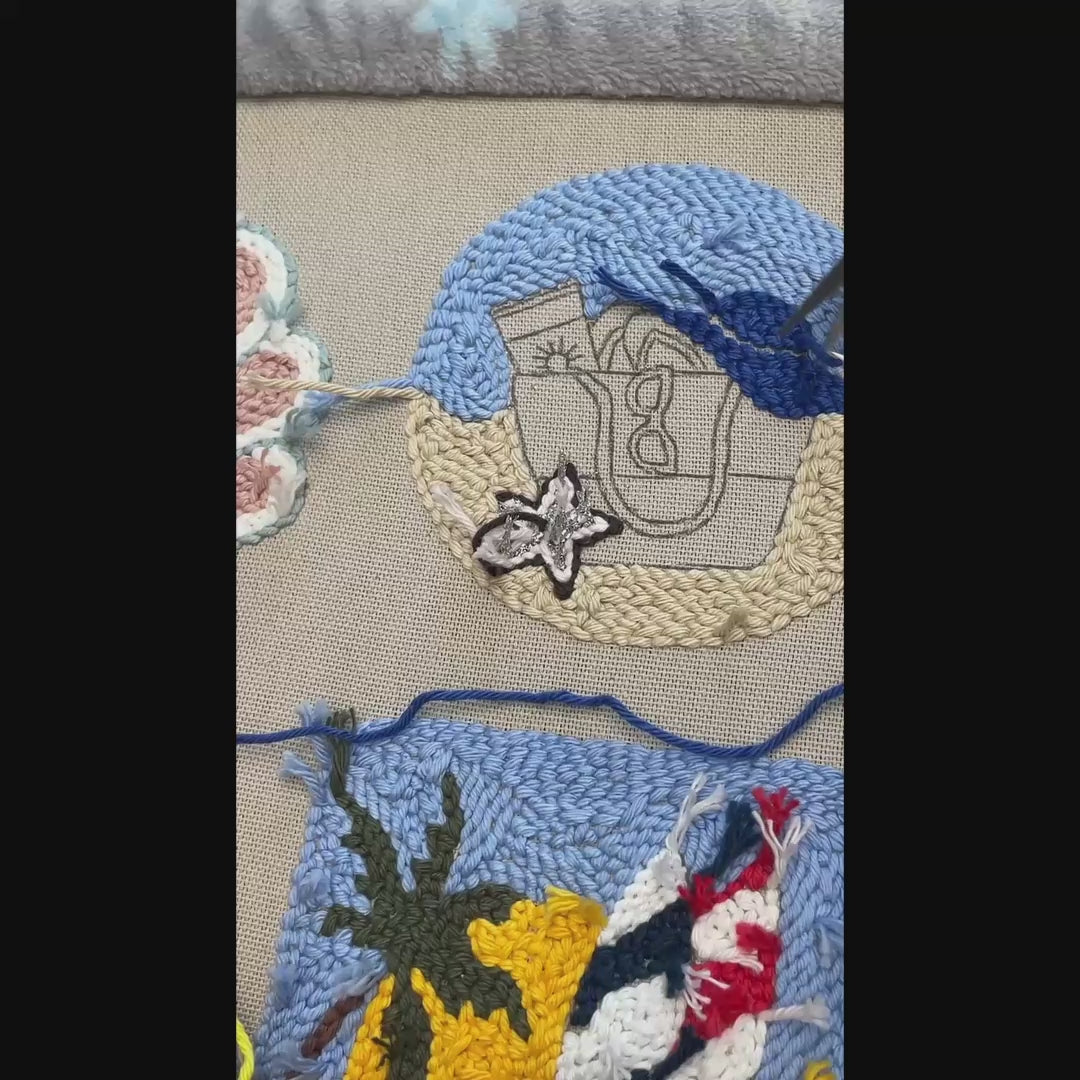 Stickmuster für Strandtaschen mit Punch Needle – Fortgeschrittene Sommeruntersetzer-Stickerei – Vorlage und Garnkarte zum digitalen Download (Fortgeschrittenen-Niveau)