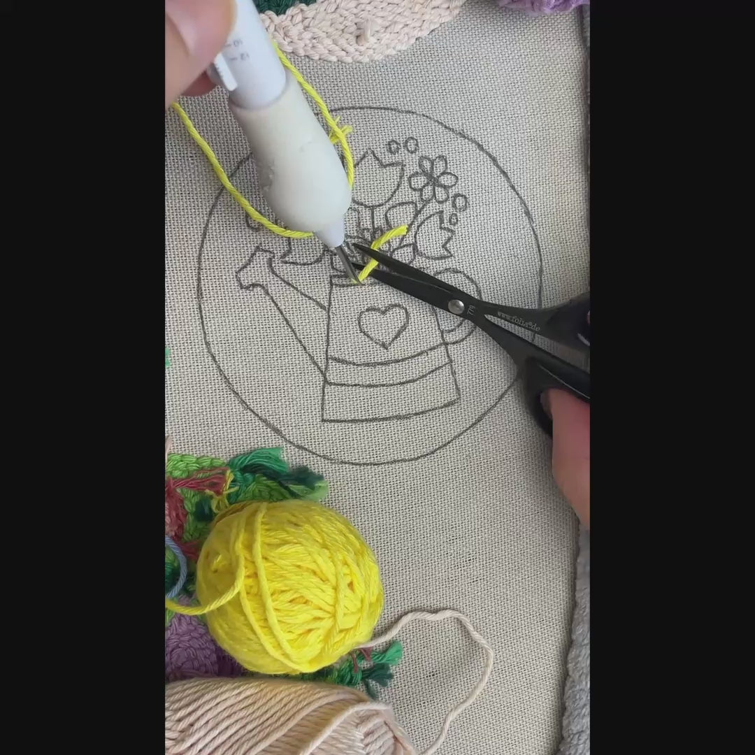 Gießkannen-Punch-Needle-Stickmuster (PDF-Download) – Florales Frühlings-Untersetzer-Stickprojekt für Fortgeschrittene