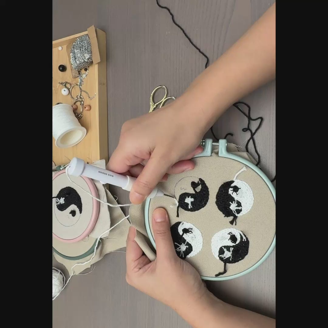 Yin Yang Punch Needle Keychain PDF – Beginner Embroidery Bag Charm Pattern