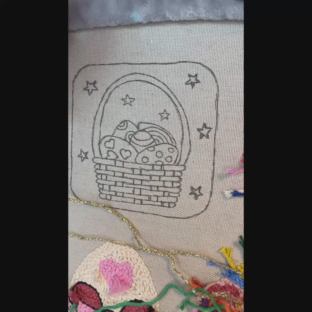 Create a rich and decorative Easter project with this basket full of eggs punch needle pattern.