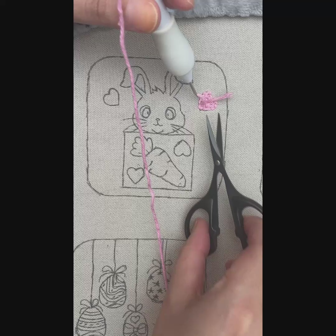 Create a playful Easter decoration with this bunny in a gift box punch needle pattern.