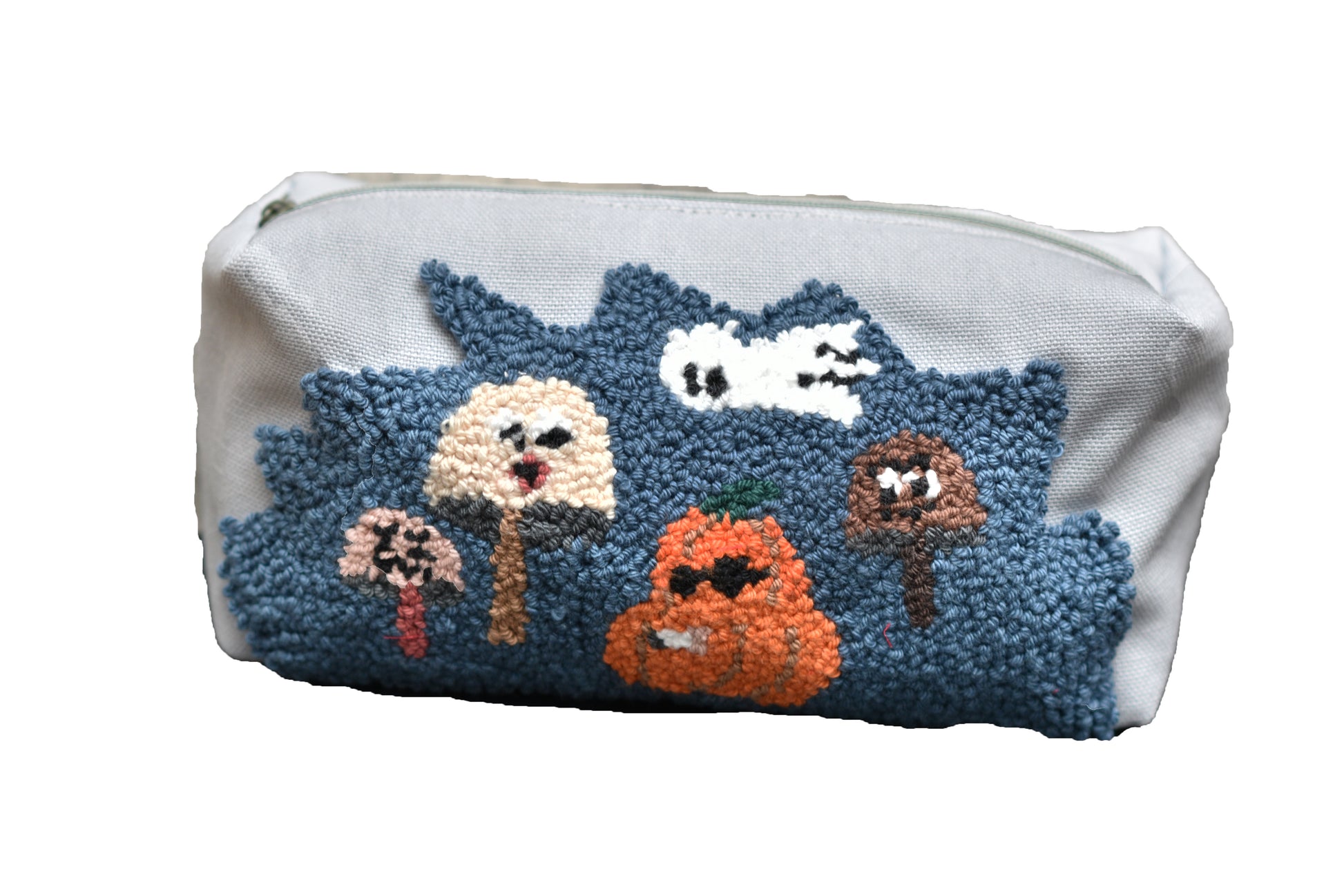 Halloween-Themed Cosmetic Bag Pattern with Punch Needle Embroidery - DIY Digital Download -Giant mushroom forest