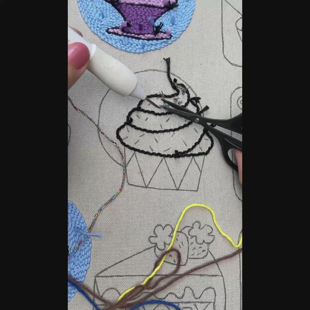 🧁 Unleash a Rainbow of Fun with this Cupcake Punch Needle Pattern! Dive into a world of color and texture with our Sprinkle Bite digital PDF pattern. This comprehensive punch needle kit features a whimsical cupcake design bursting with joyful sprinkles, perfect for crafters looking to add a pop of playful charm to their repertoire. Our instant digital download provides everything you need to create a professional-quality coaster, from a precise template to an easy-to-follow color chart. Whether you're a beginner mastering basic techniques or an experienced stitcher seeking a relaxing project, this punch needle pattern delivers a satisfying and delightful result.